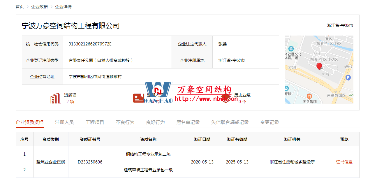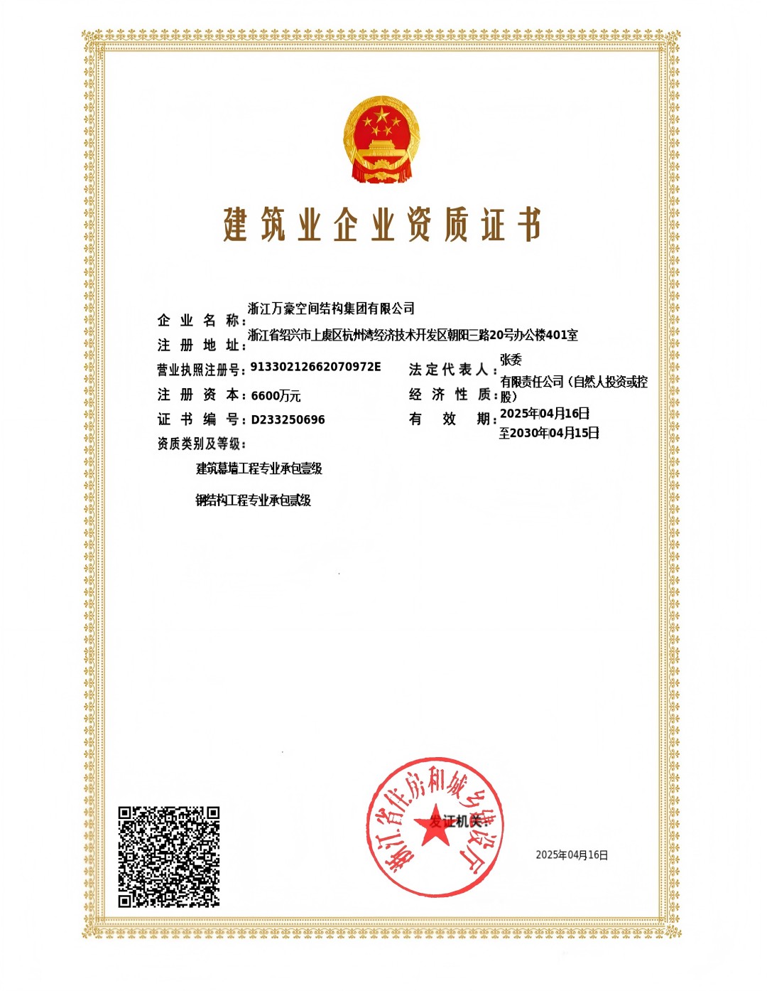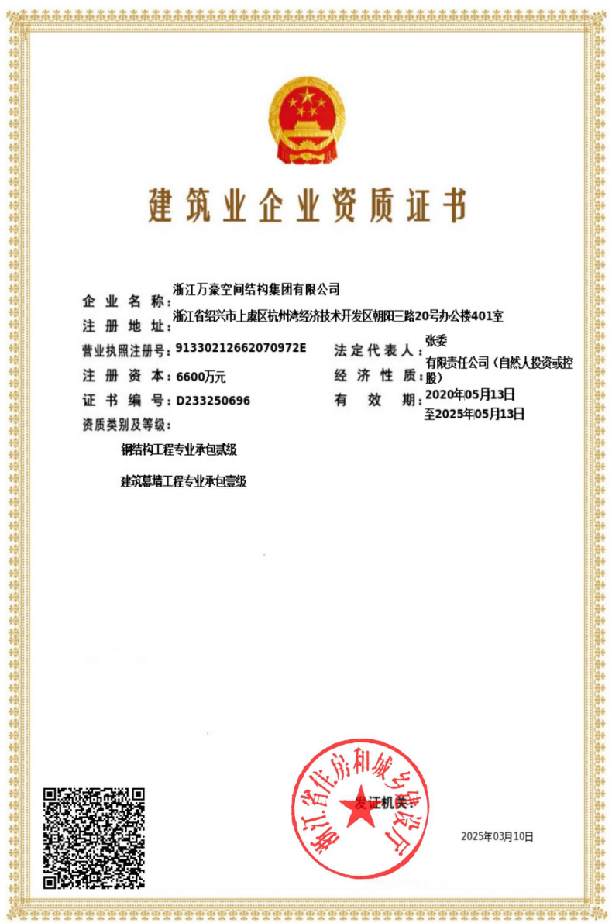 鋼結構工程二級、建筑幕墻一級證書