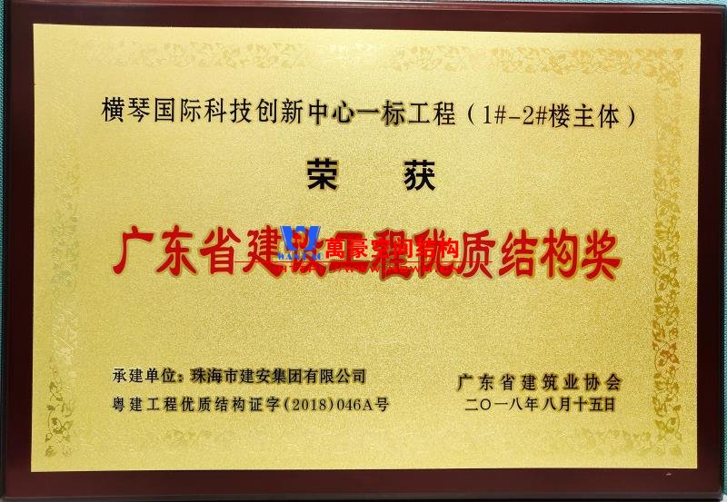 廣東橫琴工程優(yōu)質結構獎