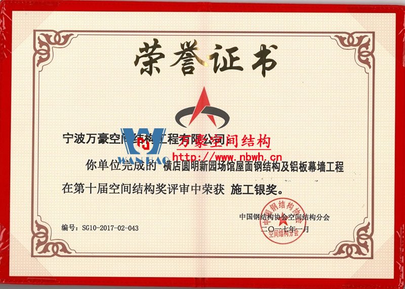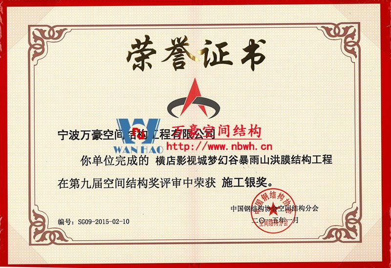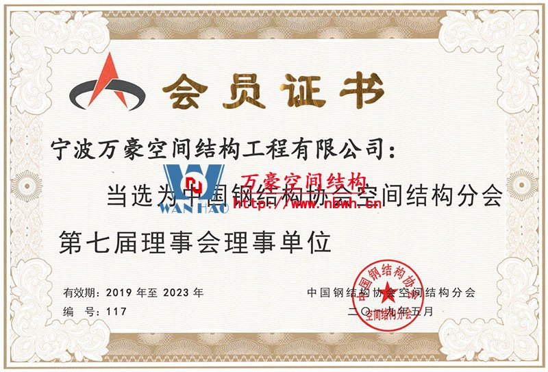 中國鋼結構協(xié)會空間結構分會當選證書