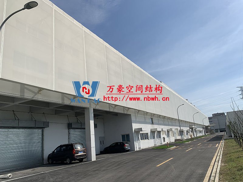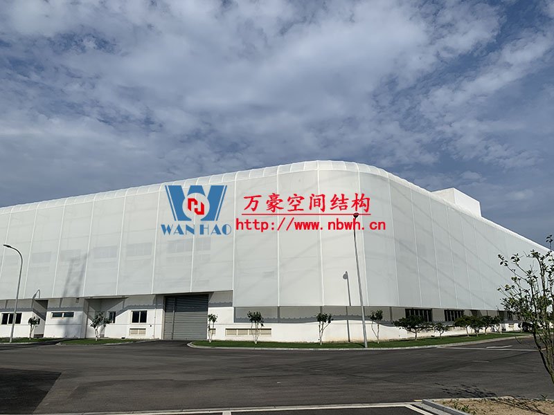 寧波益富樂公司新廠房外立面PTFE網(wǎng)格膜結(jié)構(gòu)項(xiàng)目位于浙江省寧波市奉化區(qū),由萬豪空間結(jié)構(gòu)工程有限公司承建。包括立面、頂部弧面的膜結(jié)構(gòu)和鋼結(jié)構(gòu),并根據(jù)膜結(jié)構(gòu)行業(yè)規(guī)范進(jìn)行結(jié)構(gòu)設(shè)計(jì)深化、采購、制作實(shí)施。