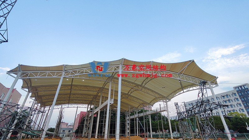 國網(wǎng)江西省電力有限公司培訓(xùn)中心實訓(xùn)基地改造膜結(jié)構(gòu)項目位于江西省南昌市經(jīng)濟技術(shù)開發(fā)去海棠南路268號,該項目用鋼量約525噸,PTFE膜結(jié)構(gòu)展開面積約5200平米。