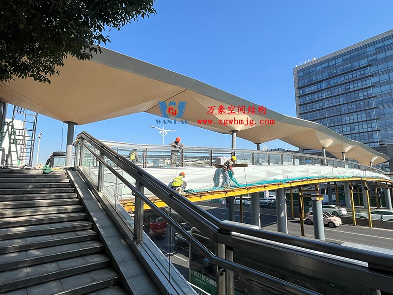 蘇州東環(huán)路人行天橋ptfe膜結構改造工程位于江蘇省蘇州市蘇州工業(yè)園內,該項目PTFE膜結構展開面積2000平米。