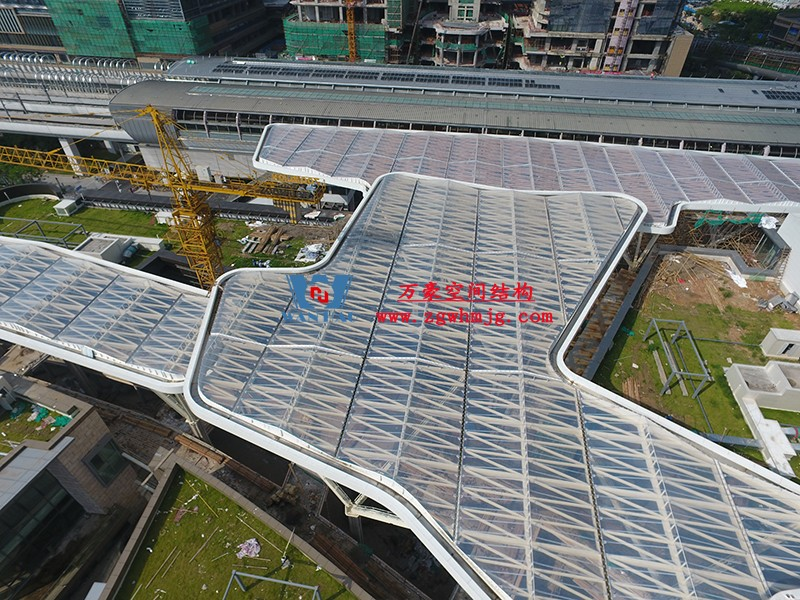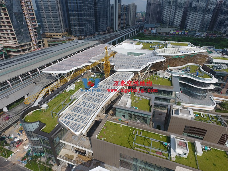 深圳龍華地鐵站ETFE天幕項目由我公司負責設計及承建,項目由4個出入口單體組成,ETFE展開面積9000平米,二次鋼結(jié)構120噸,結(jié)構落柱采用目前最流行的樹形節(jié)點支撐,在結(jié)構安全的同時更具層次感。同時該項目也完美突出了ETFE膜材高透光、高自潔性及耐高溫的優(yōu)點。