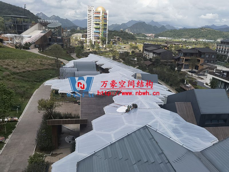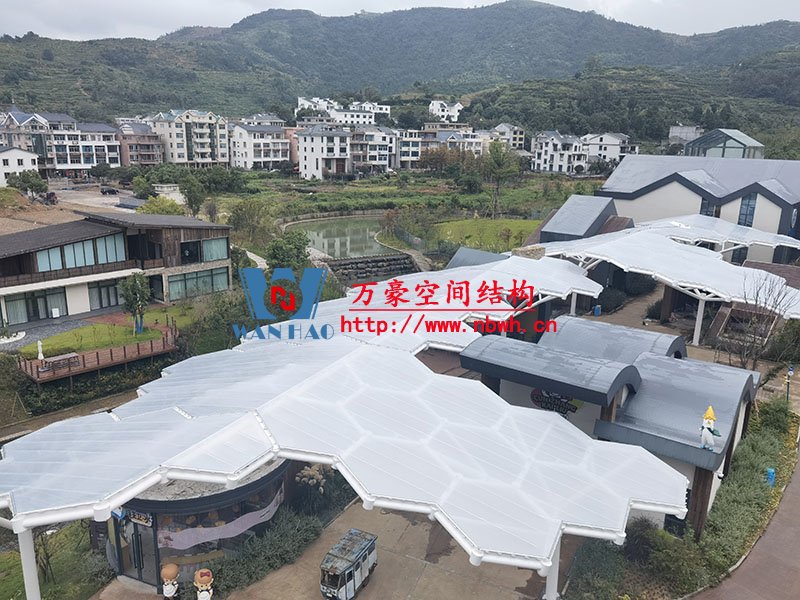 樂清鐵定溜溜樂園膜結(jié)構(gòu)工程位于浙江省溫州市樂清市,項目鋼膜結(jié)構(gòu)雨棚包括6號商業(yè)街蜂窩狀ETFE膜結(jié)構(gòu)、檢票口PTFE膜結(jié)構(gòu)、售票口PVDF膜結(jié)構(gòu)。