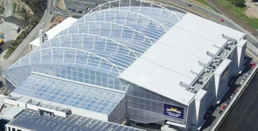 迄今為止,福賽斯·巴爾體育場(chǎng)仍是世界上擁有天然草皮的永久封閉式體育場(chǎng)。其屋頂由5個(gè)鋼桁架支撐,每個(gè)桁架跨度為105米,能夠承受一輛汽車(chē)的重量,主桁架(南看臺(tái))長(zhǎng)130米,重390噸。整個(gè)屋頂還覆蓋了2.05萬(wàn)平方米的ETFE材料。雖然ETFE并不是一種新產(chǎn)品,這種材料曾用于英國(guó)康沃爾郡(Cornwall)的伊甸園植物園(Eden Project)和中國(guó)北京的國(guó)家游泳中心“水立方”,但這是首次將其紫外線半透明特性在體育場(chǎng)中進(jìn)行應(yīng)用,并創(chuàng)造了南半球大型的ETFE覆蓋結(jié)構(gòu)。達(dá)尼丁的氣候寒冷潮濕,為鼓勵(lì)觀眾來(lái)此參加現(xiàn)場(chǎng)活動(dòng),這座屋頂也成為了體育場(chǎng)的重要特征——由于其外形酷似園藝溫室,這座全覆蓋的體育場(chǎng)被昵稱(chēng)為“玻璃屋”(The Glasshouse)。
